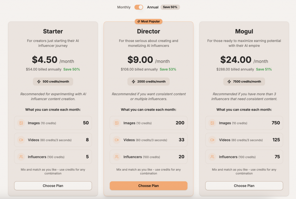 Mention spéciale à la cohérence entre les images et les vidéos : votre influenceur reste fidèle à lui-même dans toutes les scènes générées. Un vrai game changer.