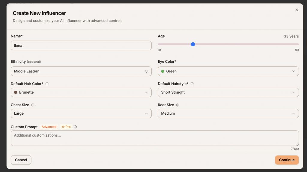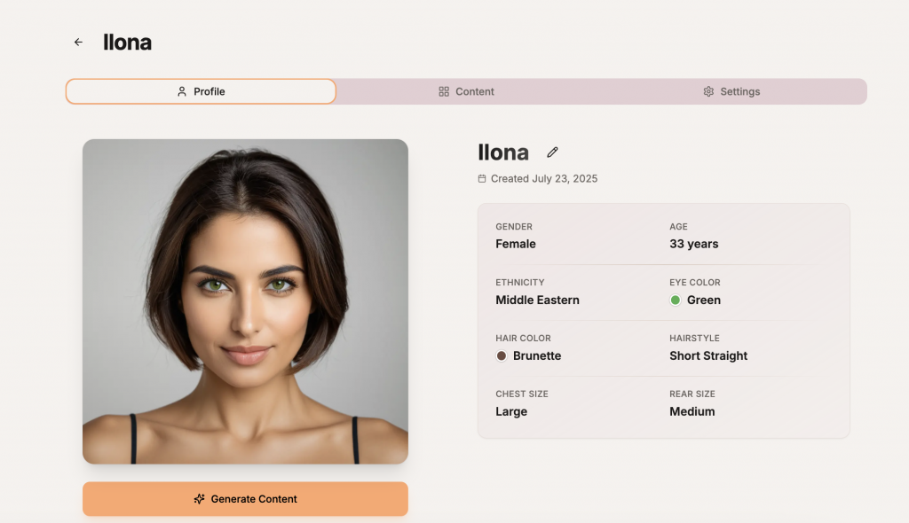 Modélisez un personnage IA à votre image (ou à celle de votre marque) : physique, style, ton, personnalité… tout est personnalisable.
