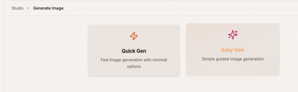 On a ensuite le choix entre quick gen et easy gen, on choisit ici easy gen pour pouvoir personnaliser au maximum le contenu généré.